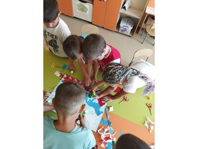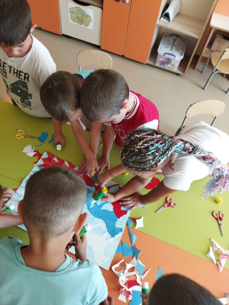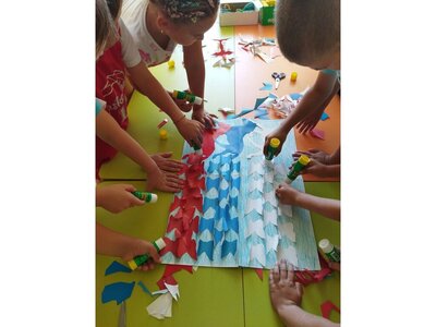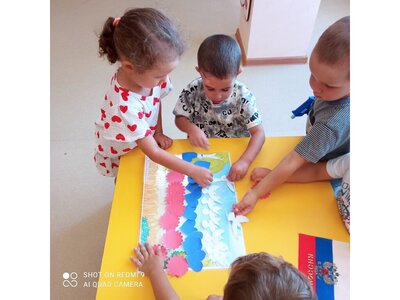 Творческие занятия: Дети с большим удовольствием мастерили аппликации российского флага. Старательно подбирали цвета и клеили полосочки, создавая свой маленький символ большой страны!
