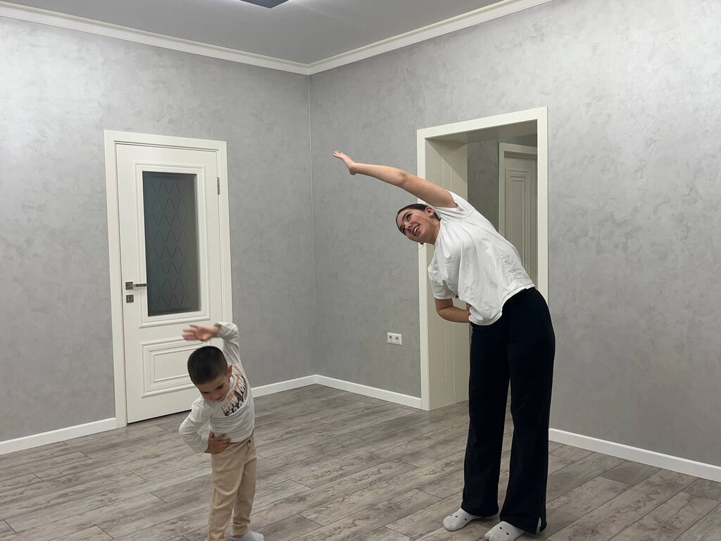 Родители вместе с детьми приняли участие в акции посвящённой Дню спорта и провели тренировку совместно с ребёнком.