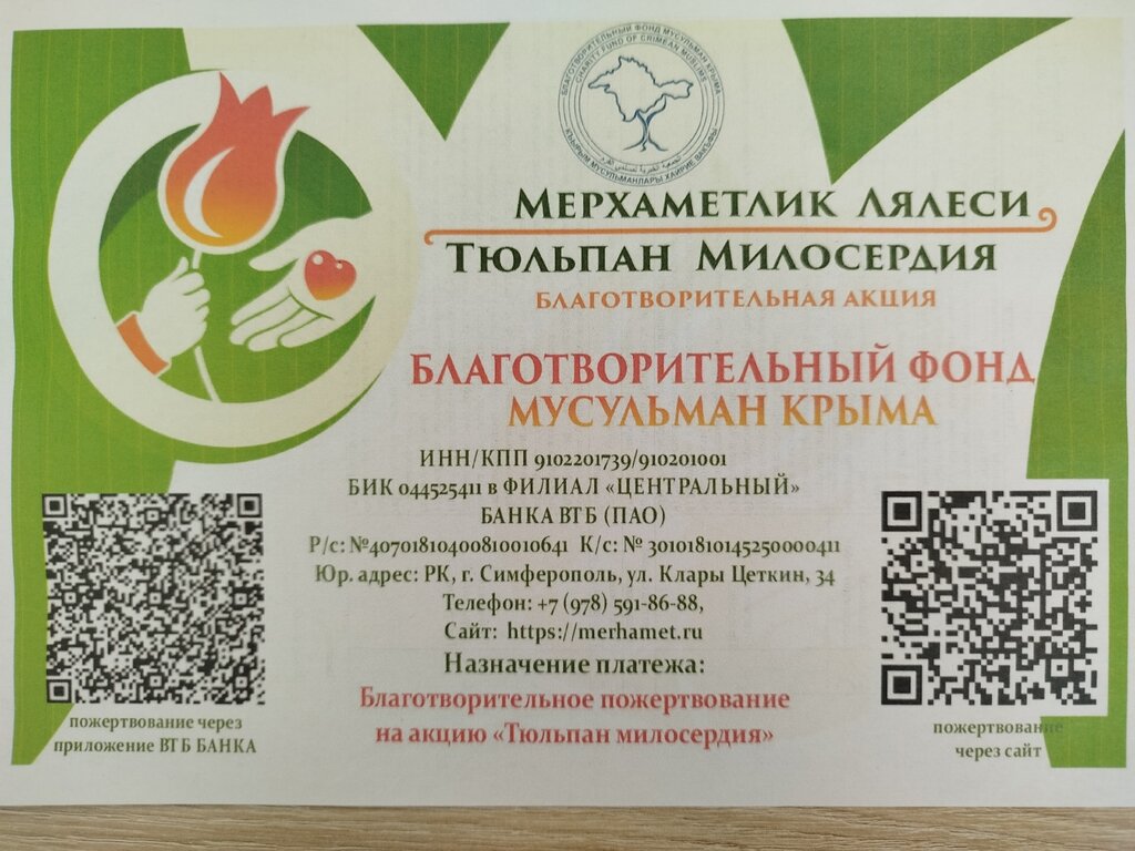 Благотворительная акция «Тюльпан милосердия» («Мерхаметлик лялеси»), инициирована Духовным управлением мусульман Крыма и города Севастополь, учреждена духовным лидером мусульман Крыма и города Севастополь хаджи Эмирали Аблаевым в 2020 году.